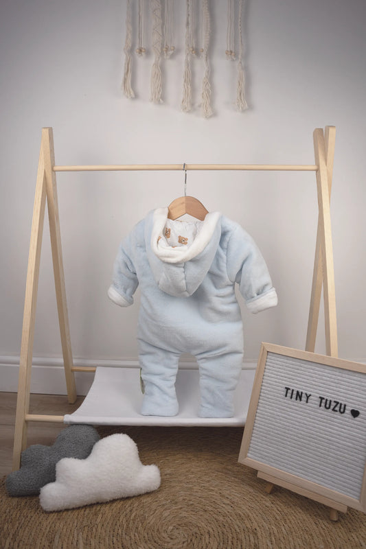PLUSH BABY SNOWSUIT WITH BEAR FACE DESIGN - BLUE