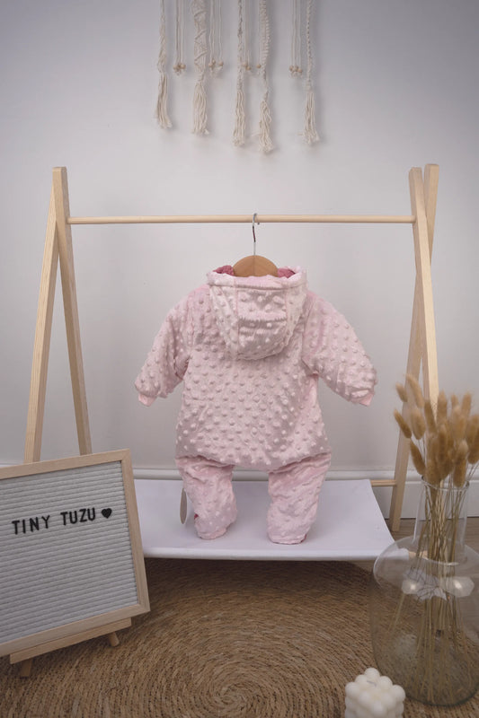 PLUSH BABY SNOWSUIT WITH BEAR EMBROIDERY - PINK