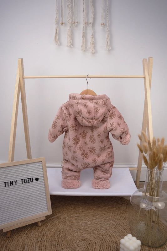 FLEECE-LINED FLORAL BABY SNOWSUIT - ROSE