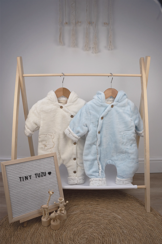 PLUSH HOODED BABY SNOWSUIT WITH BEAR DETAIL
