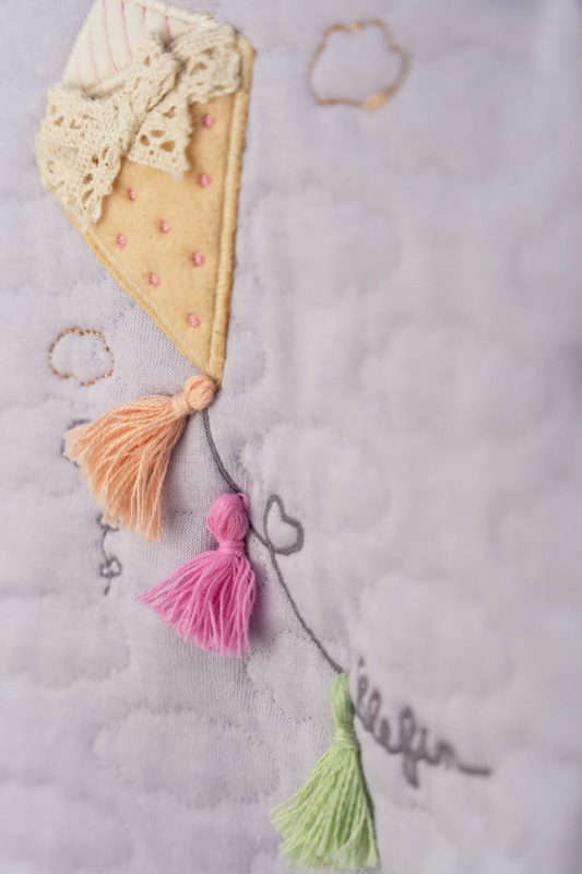 LILAC HOODED QUILTED BABY ROMPER WITH KITE EMBROIDERY (0-12M)