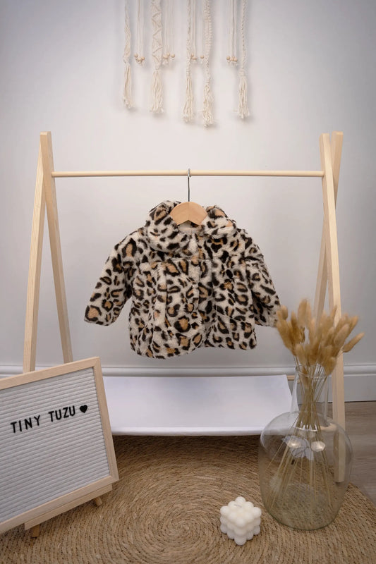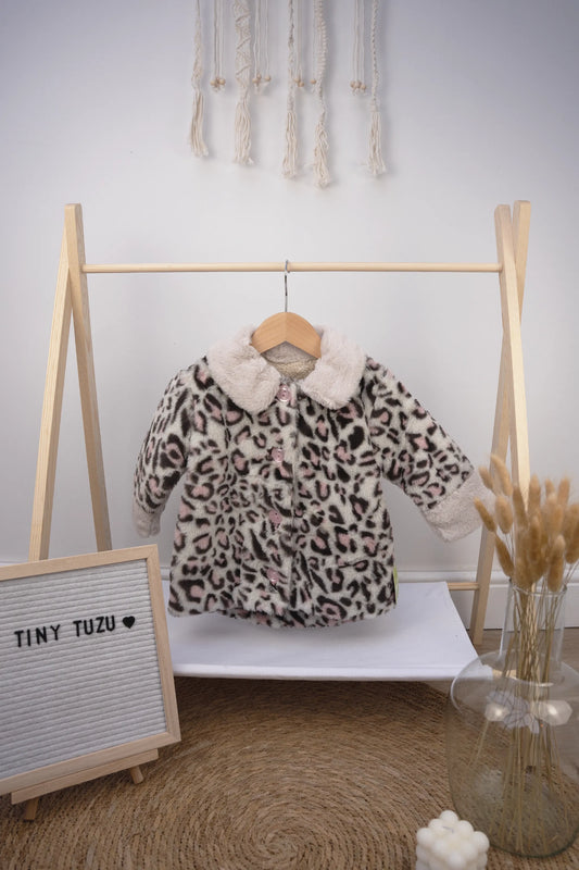 LEOPARD PRINT AND PINK FAUX FUR COAT FOR TODDLERS - 1 TO 4 YEARS