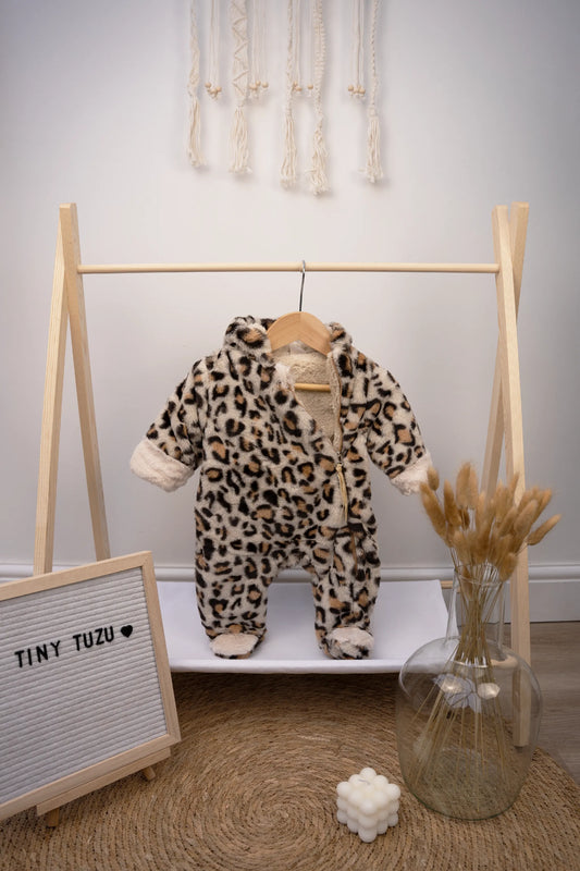 BABY ANIMAL PRINT HOODED SNOWSUIT WITH ZIP CLOSURE