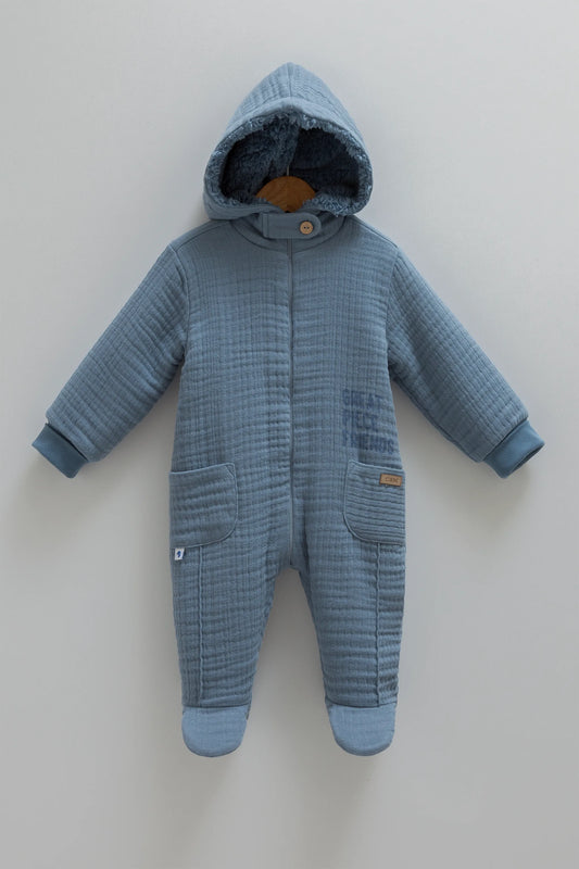 COZY HOODED BABY MUSLIN JUMPSUIT WITH SOFT FLEECE LINING - NAVY, BEIGE, GREY & BROWN