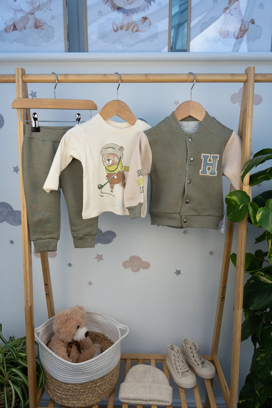 BEAR PRINT 3-PIECE HOODED JACKET, TROUSERS, AND T-SHIRT SET (6-24M)