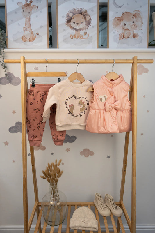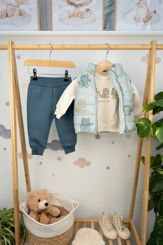LITTLE ONE ANIMAL-PRINT 3-PIECE QUILTED OUTFIT SET – BEIGE & BLUE (6-24M)