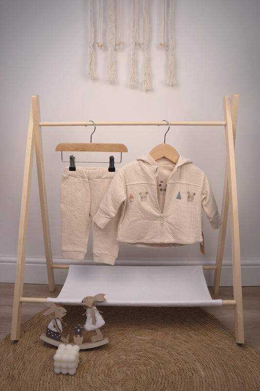 COZY HOODED BABY TWO-PIECE MUSLIN OUTFIT - JACKET AND PANTS SET WITH SOFT INNER LINING