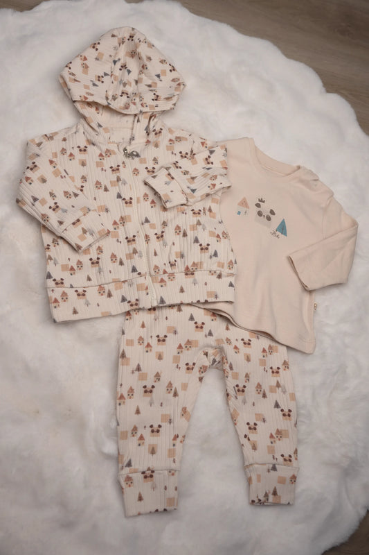 COTTON HOODED BABY ZIP-UP SET IN GRAY, BEIGE, GREEN, AND PEACH (0-12M)